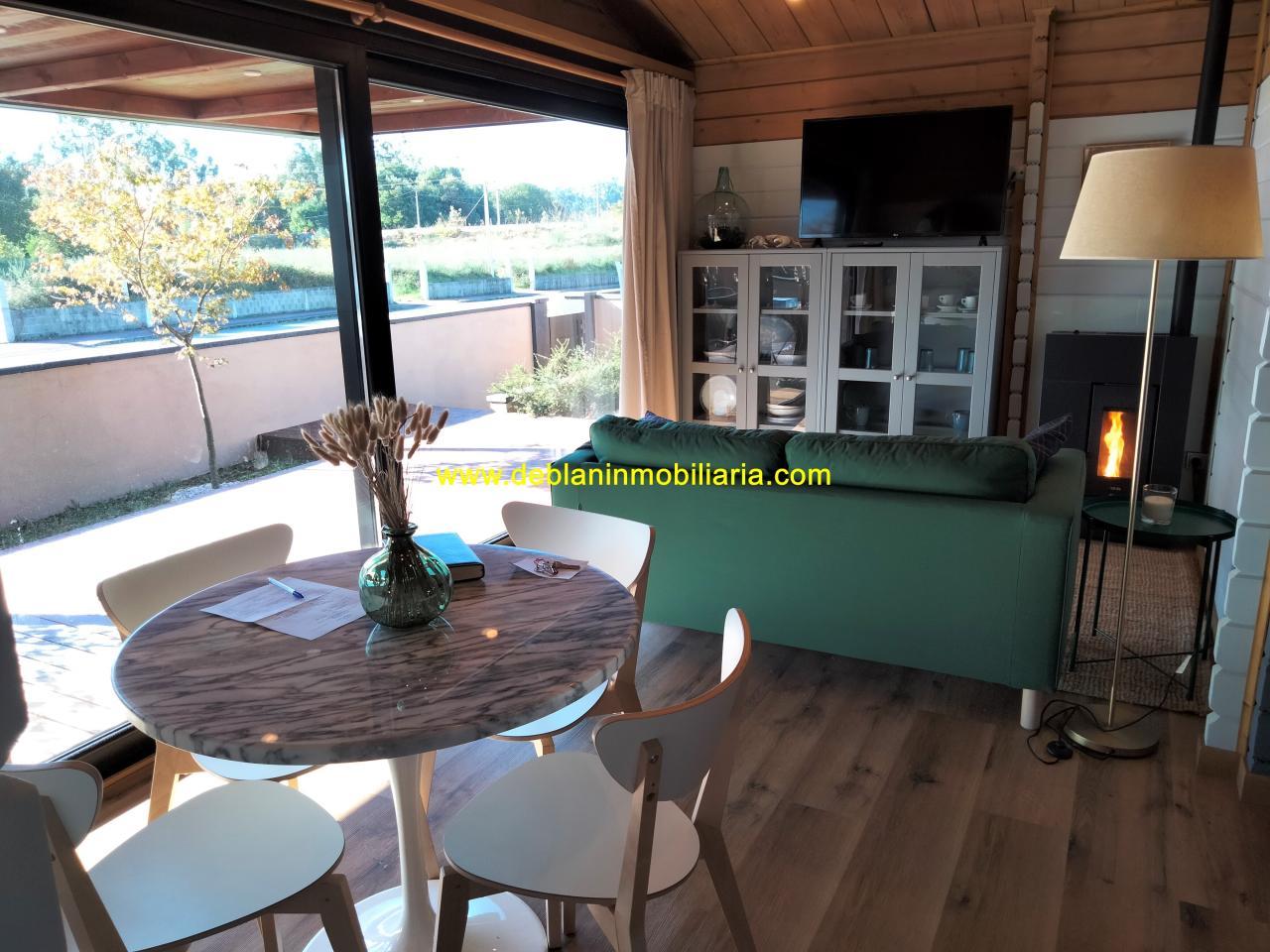 Se alquila completamente amueblada, coqueta casa de madera con jardín cerrado de 300m2 en Valença do Minho (zona Cristelo Covo). Estado impecable y buena ubicación a 1 paso de todos los servicios, accesos autovía/autopista en todas las direcciónes, ecopista, zonas verdes o deportivas y con el río miño a 300 metros. Situada en una zona tranquila y soleada, os presentamos este inmueble totalmente equipado para entrar a vivir, que consta de 50m2 divididos en: precioso porche en entrada, salón-comedor muy luminoso, cocina totalmente equipada (nevera, horno, microondas, lavavajillas, vitro inducción, cafetera y todo el menaje necesario), 1 habitación con cama de matrimonio, 1 despacho convertible en otra habitación, 1 baño y un altillo como espacio extra multiusos. Cuenta además con zona de lavandería (con lavadora y secadora) Armarios empotrados en las 2 habitaciones. Calefacción por pellets y ACS Termo eléctrico. El inmueble dispone de iluminación LED, 2 TV con Smart TV (Salón y habitación) y con Internet incluido en el precio. Dispone de zona de aparcamiento en el interior de la propiedad. No se aceptan mascotas. Ideal para una pareja. Más información y visitas con Deblan Inmobiliaria.