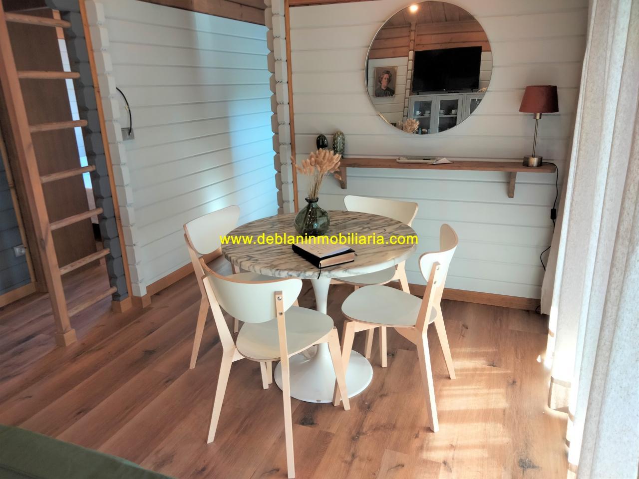 Se alquila completamente amueblada, coqueta casa de madera con jardín cerrado de 300m2 en Valença do Minho (zona Cristelo Covo). Estado impecable y buena ubicación a 1 paso de todos los servicios, accesos autovía/autopista en todas las direcciónes, ecopista, zonas verdes o deportivas y con el río miño a 300 metros. Situada en una zona tranquila y soleada, os presentamos este inmueble totalmente equipado para entrar a vivir, que consta de 50m2 divididos en: precioso porche en entrada, salón-comedor muy luminoso, cocina totalmente equipada (nevera, horno, microondas, lavavajillas, vitro inducción, cafetera y todo el menaje necesario), 1 habitación con cama de matrimonio, 1 despacho convertible en otra habitación, 1 baño y un altillo como espacio extra multiusos. Cuenta además con zona de lavandería (con lavadora y secadora) Armarios empotrados en las 2 habitaciones. Calefacción por pellets y ACS Termo eléctrico. El inmueble dispone de iluminación LED, 2 TV con Smart TV (Salón y habitación) y con Internet incluido en el precio. Dispone de zona de aparcamiento en el interior de la propiedad. No se aceptan mascotas. Ideal para una pareja. Más información y visitas con Deblan Inmobiliaria.